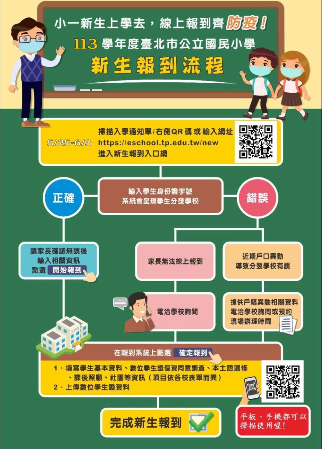 註:新生報到日期截止為6/3,資料填報期限為7/20,家長事後都可再登錄修改。